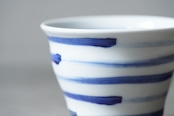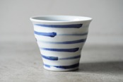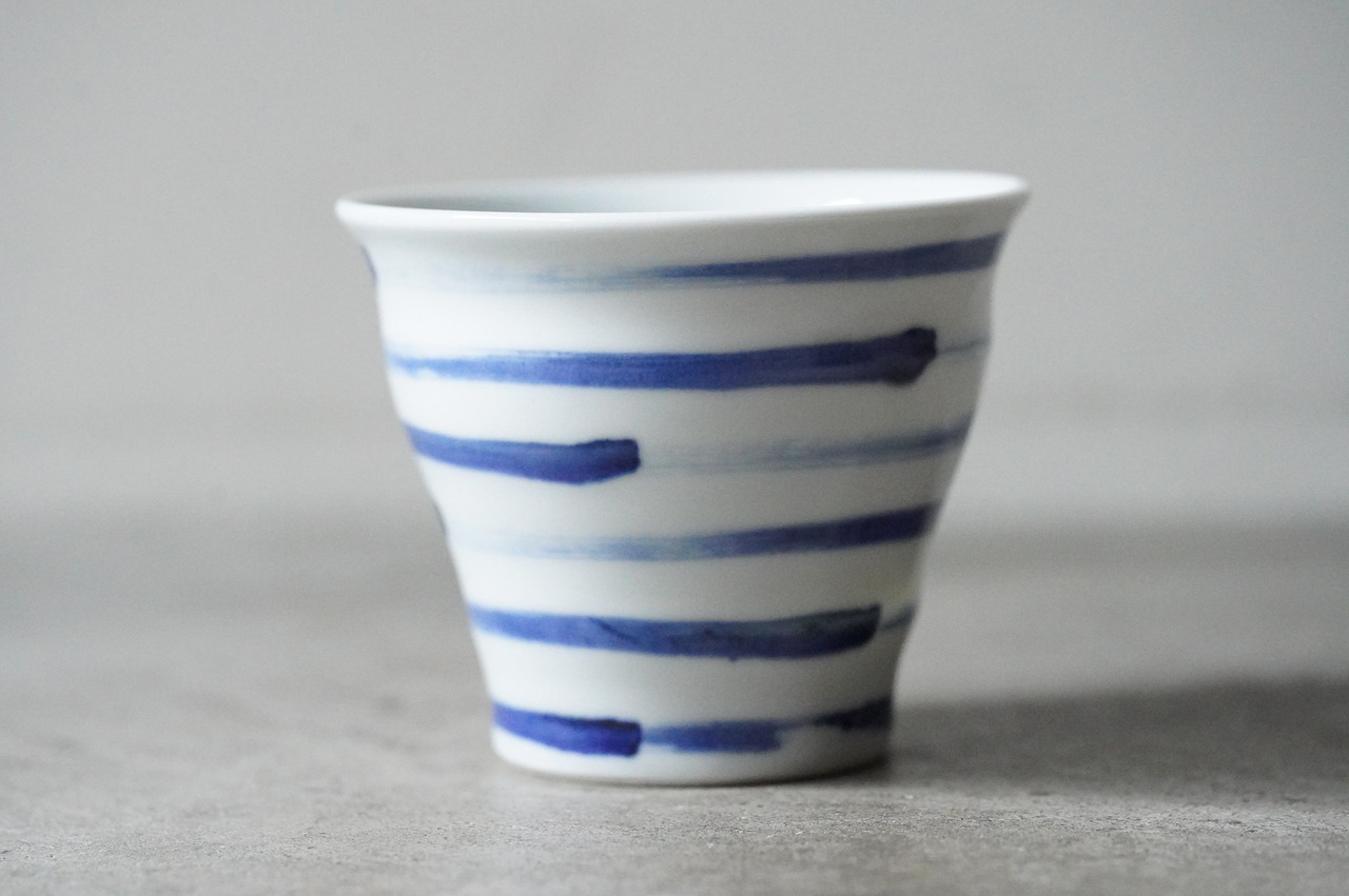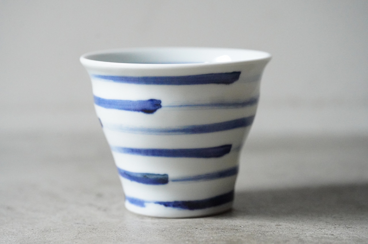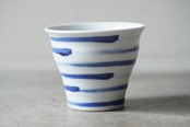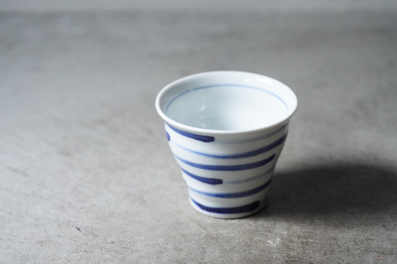 【【店舗使用品】 砥部焼 陶房遊 焼酎カップ 刷毛縞 磁器 うつわ 民芸 民藝 みんげい】