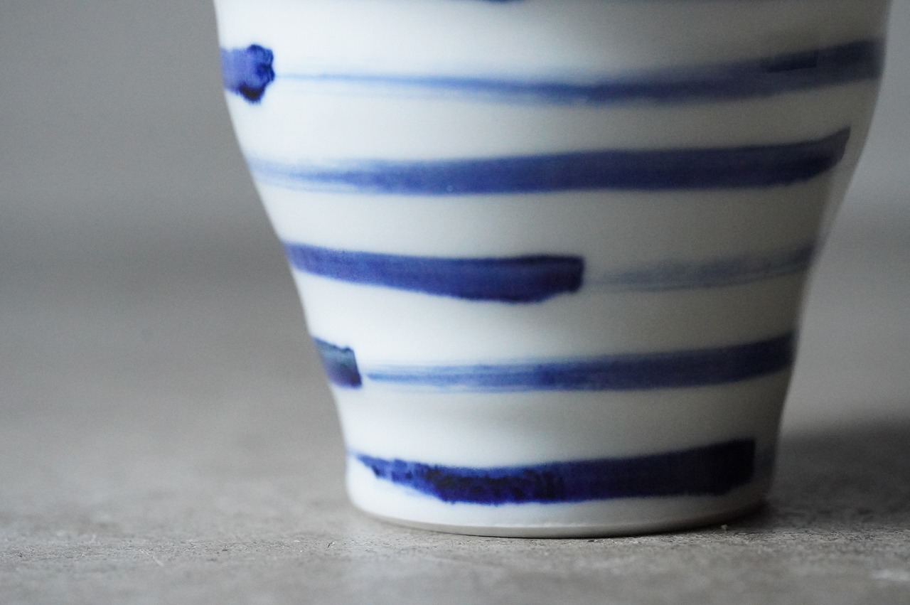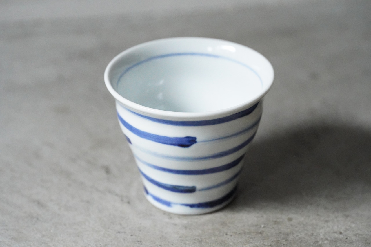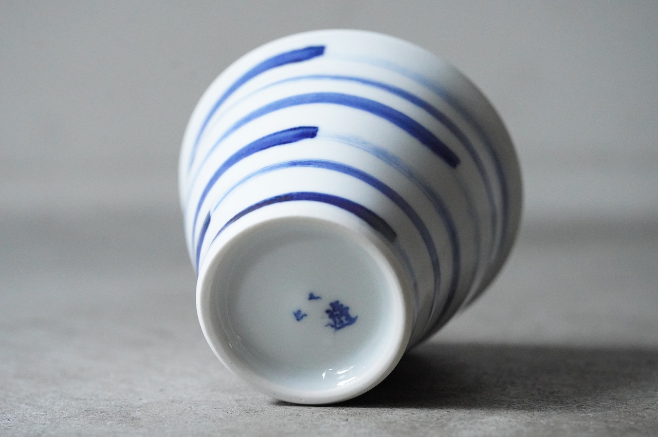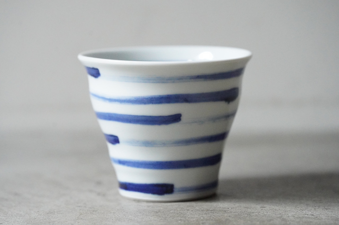 【【店舗使用品】 砥部焼 陶房遊 焼酎カップ 刷毛縞 磁器 うつわ 民芸 民藝 みんげい】