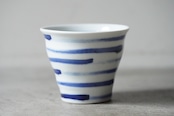 愛媛県の砥部焼、陶房遊さんの焼酎カップです。刷毛縞文の筆の走り方が好きです。もちろん、焼酎以外の飲み物でも大丈夫です。口も広がっていて口当たりが良いです。
