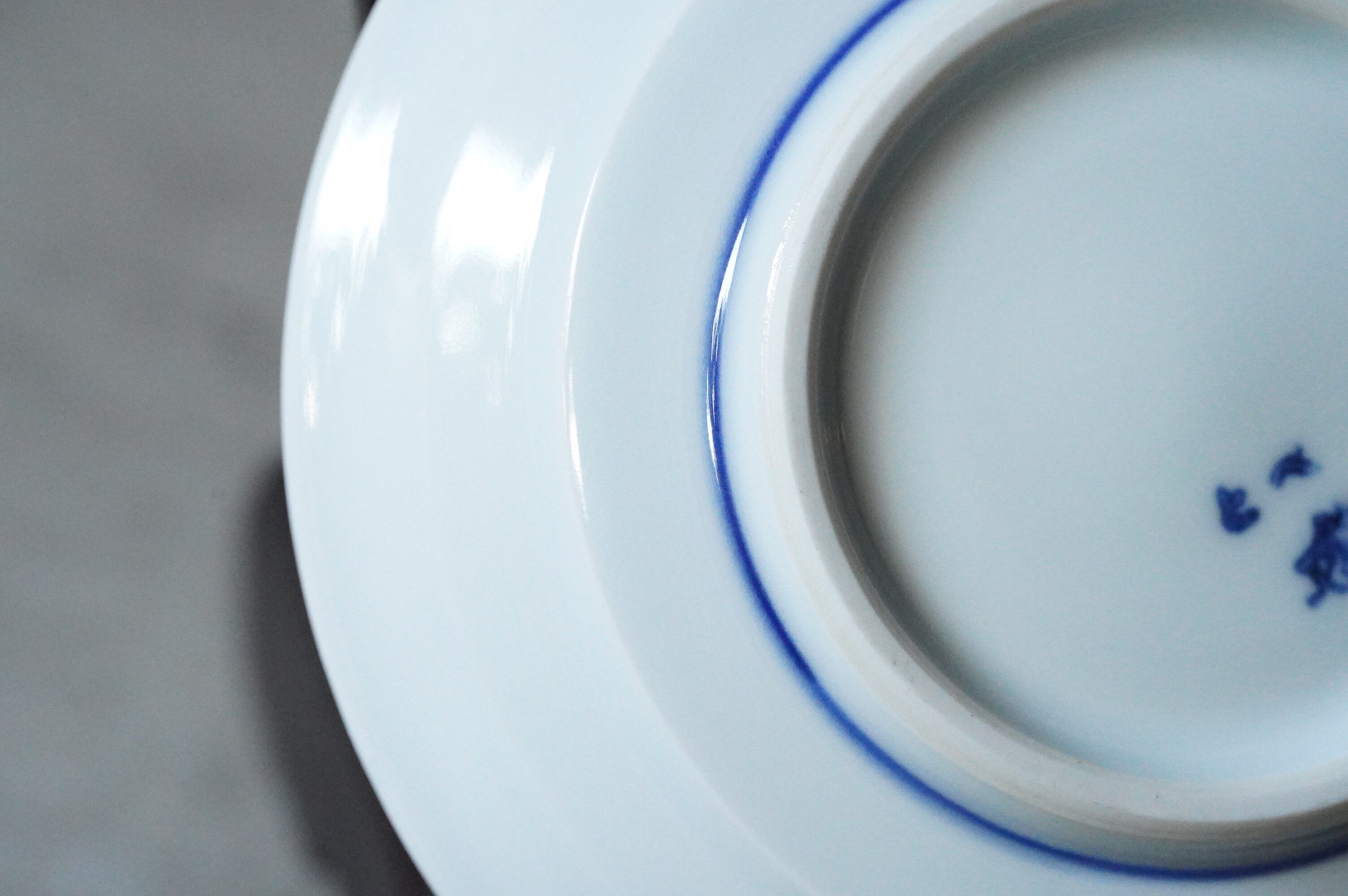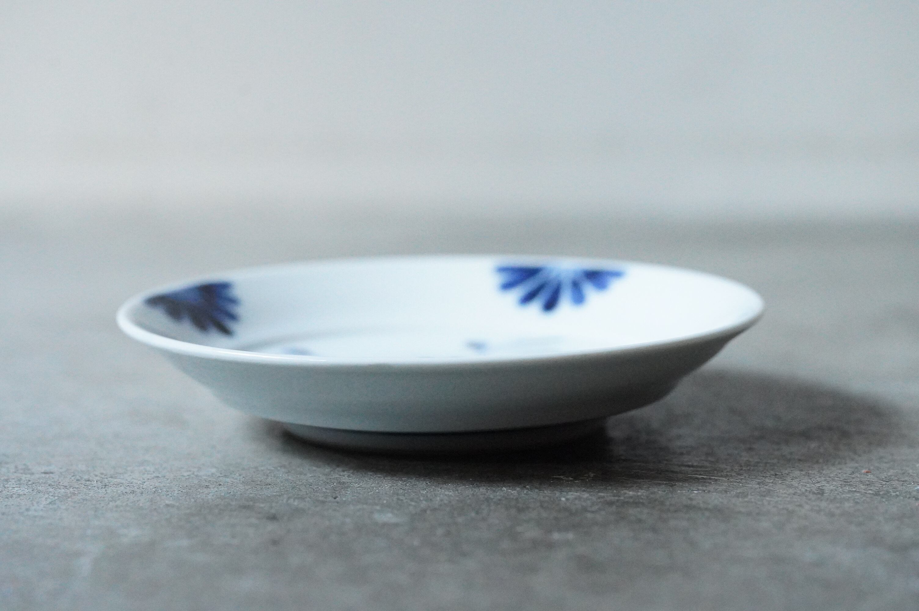 愛媛県の砥部焼、陶房遊さんの5寸リム皿になります。「菊つなぎ」という文様で余白との呉須絵のコントラストが綺麗な一枚です。5寸(約15cm)皿なので取り皿に適したサイズ感となっております。
