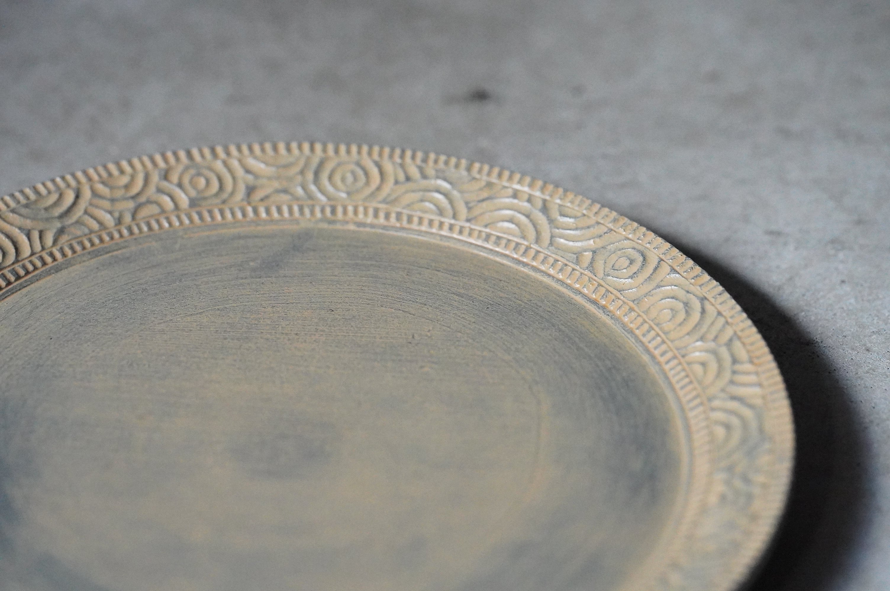 【【店舗使用品】 石黒雄大 6寸白漆皿 うず 木工 木芸 漆芸 平皿 うつわ 民芸 民藝 みんげい】
