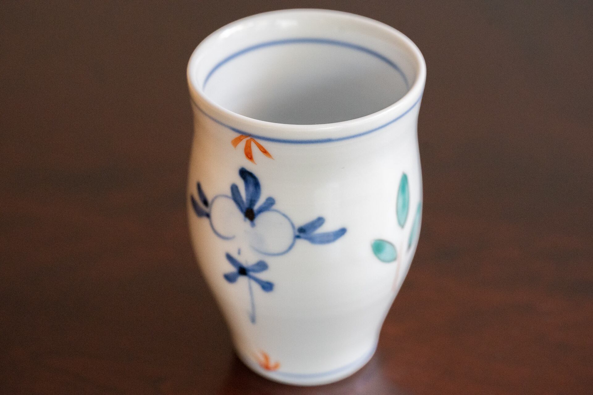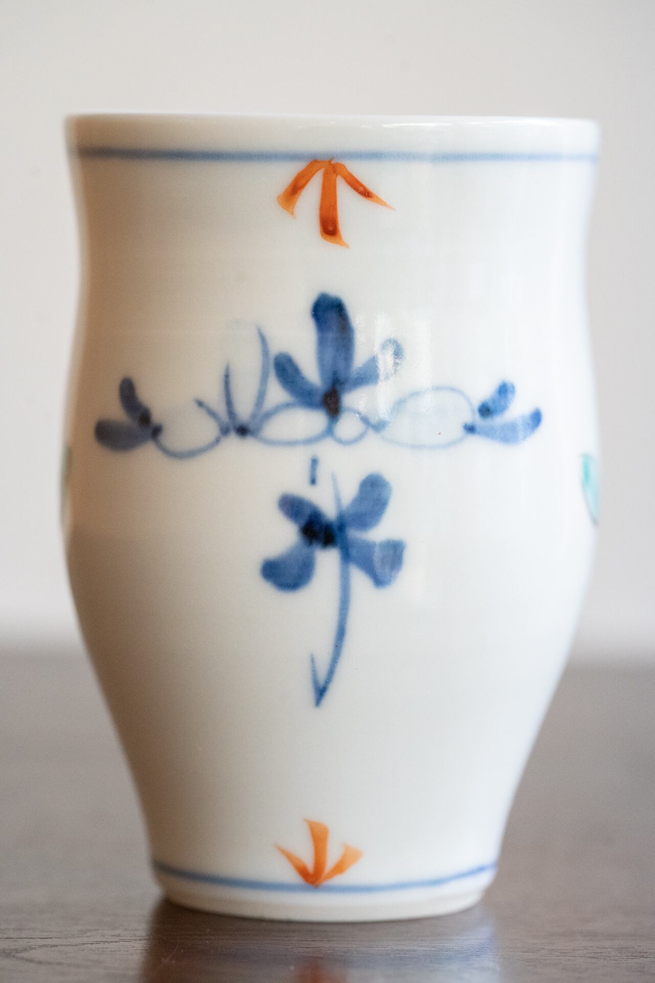 こちらは陶房遊さんのフリーカップ 。細かい紋様がカップ全体に描かれていて、規則的で気持ちがよいです。手描きならではの色絵の筆圧もカップそれぞれの表情となり個性となっています。